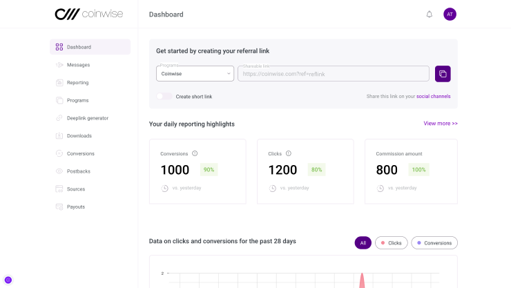 Create your affiliate account and get your account verified within 24h access to your personal dashboard